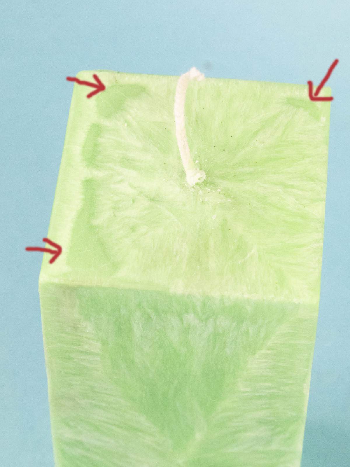 - Chyba krystalizace na povrchu svíčky.